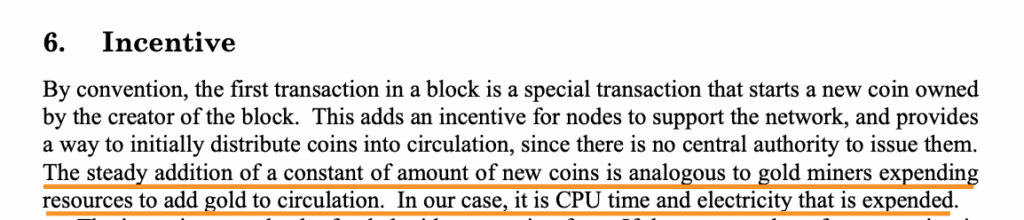 It appears that both processes share some common characteristics. In fact as proof of the comparison, the analogy is even given in the Bitcoin white paper (technical paper that explains how the cryptocurrency works). Here is a screenshot of the relevant section :